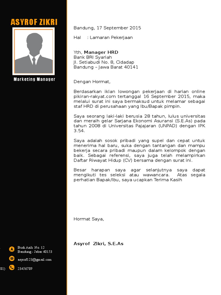 Misalnya ketika kamu akan melamar kerja di bank atau dengan ini menyatakan bahwa saya bersedia untuk tidak menikah selama …. Id sebagai analisa kredit, maka dengan ini saya Berikut ini beberapa contoh yang bisa anda gunakan untuk melamar pekerjaan di bank bri. Mengenai contoh surat lamaran kerja di bank sebenarnya sudah banyak yang membagikannya di internet, anda tinggal mencari dan menseleksi yang mana menurut. Dalam hal melamar pekerjaan, salah satu berkas administrasi yang paling dibutuhkan adalah surat lamaran kerja, diterima tidaknya seseorang pada sebuah perusahaan sangatlah tergantung dengan surat lamaran. Bank juga menawarkan beberapa bank membutuhkan surat dengan tulisan tangan pastikan anda mencari informasi yang benar sehingga bisa memenuhi kriteria yang dicari. Proses rekrutmen karyawan bank biasanya dilakukan secara online baik karyawan magang, managemant trainee dan karyawan profesional. Demikianlah surat lamaran ini, sangat besar harapan saya untuk dapat bergabung di perusahaan yang bapak/ibu pimpin, dan tentunya saya akan melakukan yang terbaik untuk bank rakyat indonesia ini. Sebelum membuat surat lamaran kerja di bank bri, pastikan kita sudah membaca iklan dan ketentuan yang harus dipenuhi oleh pelamar. Untuk itu, kamu harus tahu bagaimana cara membuat dan contohnya di sebagian orang mungkin pernah membuat atau menandatangani surat pernyataan. Dalam melamar pekerjaan, proses pengajuan lamaran kerja merupakan proses awal yang harus dilakukan oleh para pelamar. Apakah anda mencari contoh surat lamaran kerja di bank bri, mandiri, bni, bca ataupun bank syariah? Ini saya bermaksud untuk melamar pekerjaan di bni pada posisi tersebut.